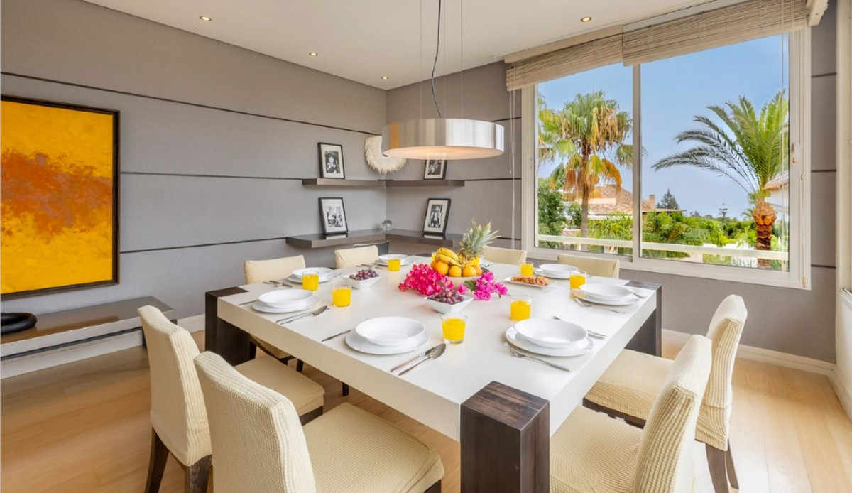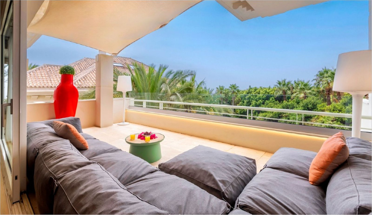 Southwest facing, luxury duplex 3 bedroom en-suite apartment in Nagueles with spectacular views to the Mediterranean , Gibraltar and Africa. The apartment is situated in a tranquil location, within a luxury complex of only 16 apartments;3 minutes from the popular beaches of Marbella's Golden Mile and 5 minutes from the renowned Puerto Banus. This duplex penthouse apartment offers luxury finishes, high ceilings, hardwood floors, contemporary kitchen with eat-in corner and interior designed furniture, as well as being sold with two underground garage space and storage room included in the price. The community features a large swimming pool ideal for doing laps and a children's pool area.
