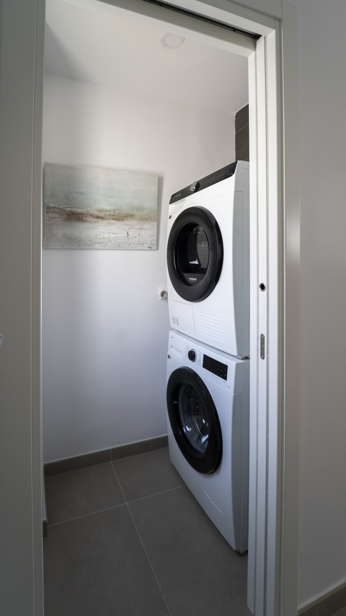 Op de begane grond bevindt zich een ruime woonkamer die direct uitkomt op een privéterras – perfect om te ontspannen of gasten te ontvangen. De eigentijdse keuken is volledig geïntegreerd in de leefruimte en er is een aparte wasruimte met een wasmachine en droger voor extra gemak. In totaal zijn er drie slaapkamers en twee badkamers, ideaal voor gezinnen, stellen of groepen.
