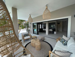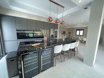 A unique property located on the first line golf of the Santa Maria Golf Course with breathtaking sea views. This large villa (468m2 living space and 200m2 balconies and terraces) on a large plot of 1335m2 is fully renovated to the highest standards. It offers 7 bedrooms, an office and 8,5 bathrooms. Since the hillside location, the villa is divided into 5 floors which are accessible via the indoor elevator. On the top floor (level +1 from street level) an office (or bedroom) is located with amazing sea views. On the driveway, with a carport with solar panels, there is space for 2 cars. On the street level, the garage for 2 cars is located with an electric car charger, as well as one of the main entrances to the house. Here the sports storeroom and the laundry room are located. Furthermore there are 2 bedrooms and a bathroom located on this level. This can easily be converted into an au-pair or valet apartment with a balcony. The bedroom level is located on level -1. Here you find 3 bedrooms, all with en-suite bathrooms as well as the master bedroom with amazing sea view, a large walk-in closet and an amazing master bathroom, with a freestanding bath with a glass ceiling and sea view, double showers, a separate toilet and bidet. The living floor is located on level -2. Here another main entrance to the house is located, as well as a bedroom with en-suite bathroom, the cloakroom and another storeroom. The living room is an open plan with the kitchen, where the 6-meter glass sliding door gives you direct access to the terrace with gazebo and outdoor kitchen and the large infinity pool. Finally the bonus of the villa you find on level -3 with the home cinema with bar, the gym and the spa with steam bath, sauna and an extra bathroom. Outside on this level you find a grass field with the sun loungers. The villa is fully renovated. New piping, plumbing and wiring. All appliances are new and energy efficient. The windows have been replaced by aluminum isolated windows with electric shutters. The villa is equipped with solar panels. All bathrooms and the living room and kitchen are equipped with floor heating. The bathrooms are modern and equipped with Grohe taps. Both inside as outside the same greige large tiling is applied and the bedrooms have wooden floors. The kitchen is fully equipped with an island, a hotplate with build-in extractor, 2 wine fridges, an interactive (Samsung) American Fridge, a steamoven, oven and micro-wave, plate warmer, two dishwashers, all of Siemens IQ700 line. The Quooker watertap has instant boiling water. Furthermore the house is equipped with Siemens light switches and Fibaro demotica home automation. The villa will be equipped with a mesh internet network as well as Sonon speakers and an alarm system with cameras for maximum security. The entrance doors are equipped by the Salto door locks and open with a tag. The Mitshubishi airconditioning is divided per floor and equipped with Airzone. The lush garden will be full of bamboo, palm trees, a waterfall and a marble fountain. The garden is equipped with an irrigation system. The garden (and the outside) of the house will be beautifully lighted. The bright-colored Ibiza-style interior will be the icing on the cake of this modern villa with the Andalusian feeling. You just have to grab your bags and you are ready to move in the 1st of April 2022. Details list Vileria Total construction 579m2 Total living space 468m2 Total balcony terrace 200m2 Total plot size 1335m2 Total floors 5 Lift 4 floors Total bedrooms 7 Office 1 Total bathrooms 6 Cloakroom 1 Home cinema, spa, gym, shower and toilet Airconditioning 2x Mitsubishi Electric Duct 7.1Kw 2x Mitsubishi Electric Duct 12.1Kw 1x Multiroom Airzone Wifi Partly linear ceiling slot diffuser lines (iso grill) Heating Bath room Electric floor heating & towel rack heating Living room/kitchen Electric floor heating Plumbing Enitre new plumbing throughout the villa Solar hot water boiler 2x 300 liter Water filter Return circulation pump Electrics Entire new cabling throughout the villa Siemens Delta Carbon light switches and power plugs Samsung Tablet controllers each floor + master Fibaro home automation (Demotica) Prosecur alarmsystem Reolink 11 cameras system Multi room audio streamers in each room + in ceiling speakers Wifi Network Ubiquiti network 8 accesspoints 4 devided networks (Internet/ Camera/ Audio/ Demotica) Electric car charger Solar panels Automated irrigation system "Nice" garage gate/door motors Doorbird intercom Home cinema system basement 200+ in celing spots (white) 50+ outdoor house lights (black) 60+ garden spots (black) Ceiling hanging lights Windows/doors Protec Aluminium windows majority with electric shutters Buster & Punch copper door handles/ hidden door hinges Salto door locks main entrance doors Kitchen Glass titanio furniture Granit worktop Samsung SIdebySide fridge with touchscreen Siemens steam oven Siemens oven Siemens microwave Siemens plate warmers (2x) Siemens bob with extractor in hob Siemens dishwasher Winecooler (2x) Quooker instant boiling water tap Food waste dispenser Bathrooms Warm sunset/ hard graphite Grohe showers Dos Avila/ Salgar wash basings Grohe sanitary Avila Dos/ Salgar sinks Walk-in showers Double shower master bathroom Jacuzzi bathtub 190x90cm Electric floor heating + towel rack heating APE tiling Bedrooms Wooden herring bone floors Power blinds windows Build-in wardropes Audio streamers and in-ceiling speakers Tiling Hallways/ stairs/ bathrooms/ living/ outdoor and pool Same APE tilefloor (Blanco) 120x120cm APE tiling bathrooms Pool Infinity pool size approx 9x4x1,6m New pipework infinity pool New infinity deposit New tiling New RGB lights (3x) Pool heating Saltwater Generator Chlorinator Outdoor shower Garden New lush type garden with Palmtrees/ Bambu Artificial grass sun deck Spotslights throughout garden Outdoor kitchen with green egg and BBQ Pergola outdoor dining area Carport with solar panels Laundry room Kitchenett