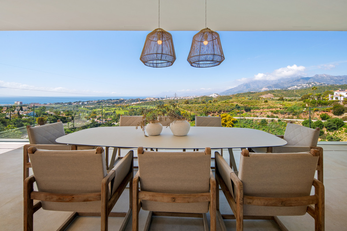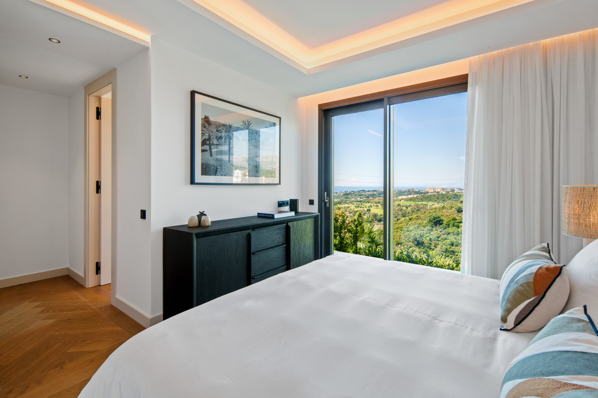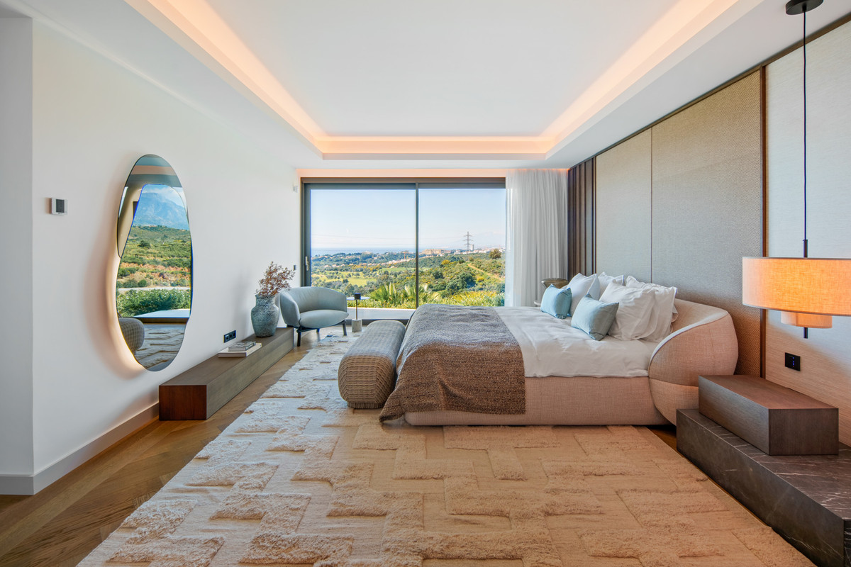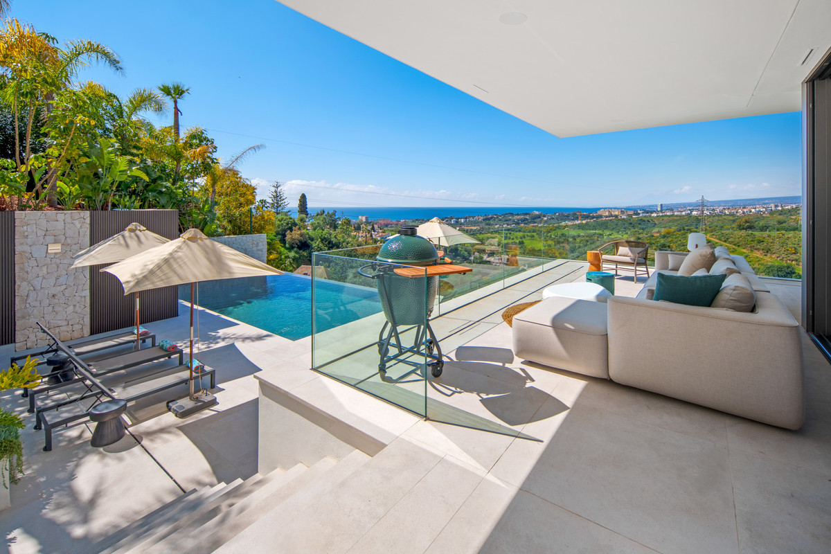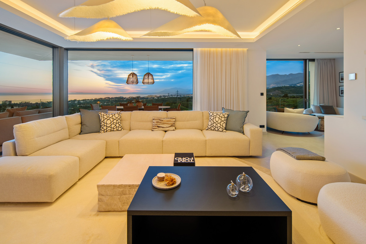 Inside, the villa is finished to a high standard with elegant stone surfaces, warm wood cabinetry and discreet lighting. Generous bedrooms include stunning ensuite bathrooms, while the master suite offers direct terrace access and panoramic sea views. With its modern design, private setting and exceptional vistas, El Rosario 430 is a standout contemporary home in Marbella East.