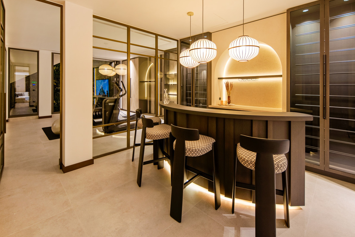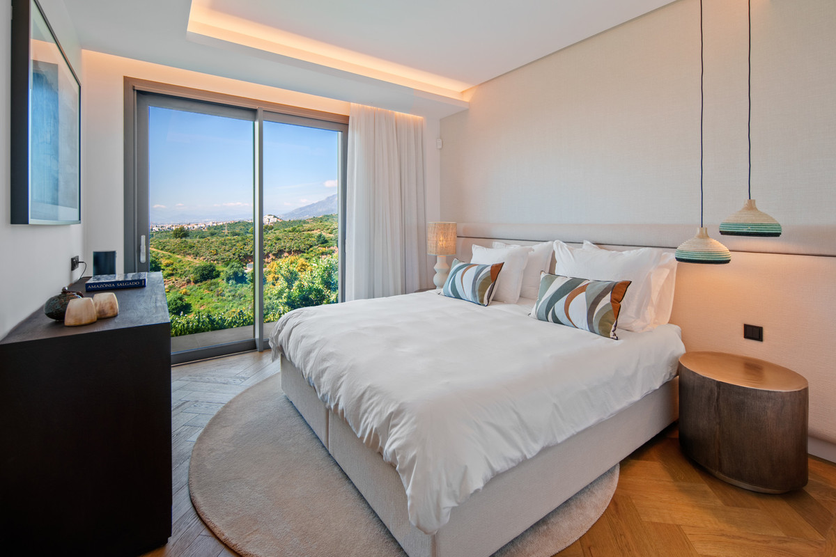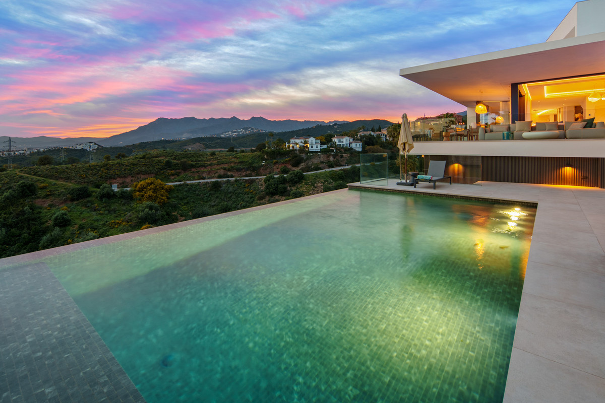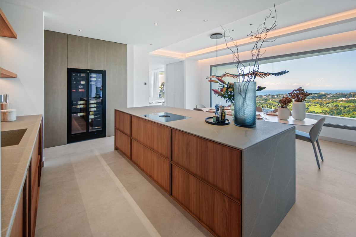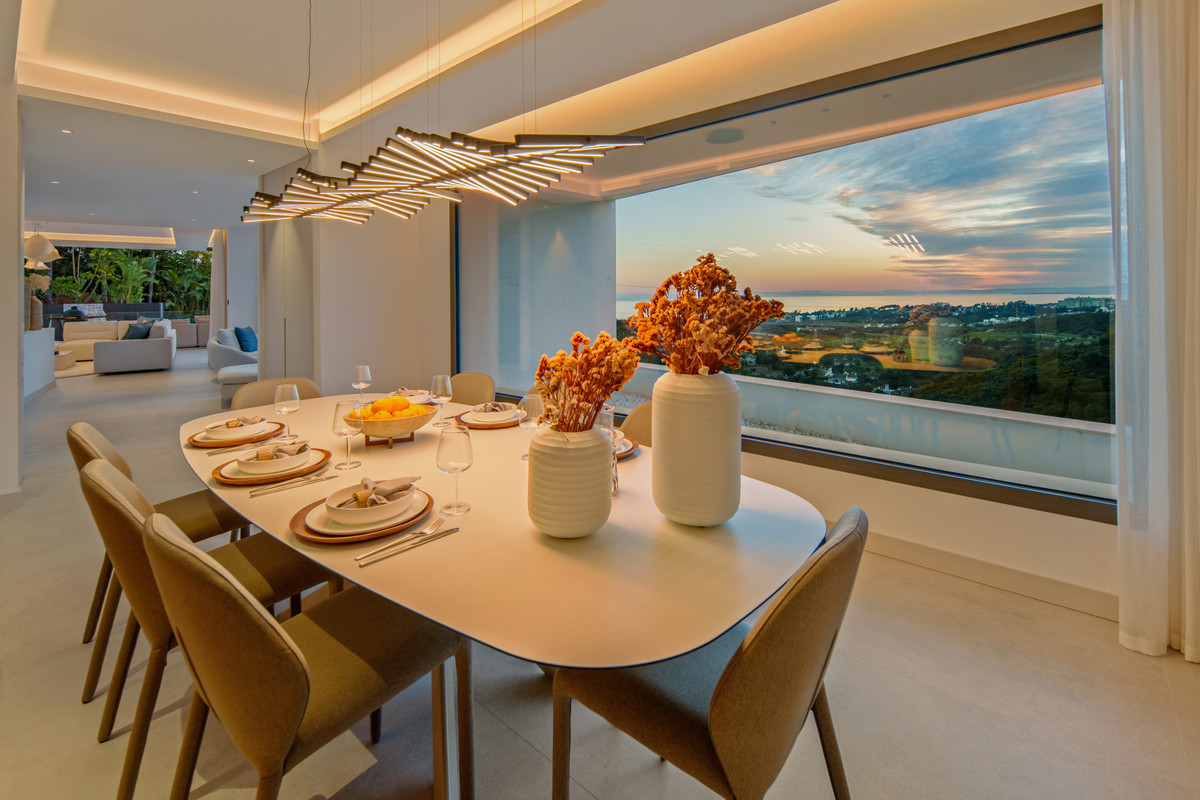 Inside, the villa is finished to a high standard with elegant stone surfaces, warm wood cabinetry and discreet lighting. Generous bedrooms include stunning ensuite bathrooms, while the master suite offers direct terrace access and panoramic sea views. With its modern design, private setting and exceptional vistas, El Rosario 430 is a standout contemporary home in Marbella East.