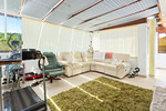 De woonkamer is ruim en licht en heeft toegang tot de terrasruimte. Hier vinden we een zeer groot glazen terras voor gebruik het hele jaar door en een prachtig panoramisch uitzicht. Er is ook een onoverdekte ruimte, ideaal om te zonnebaden.