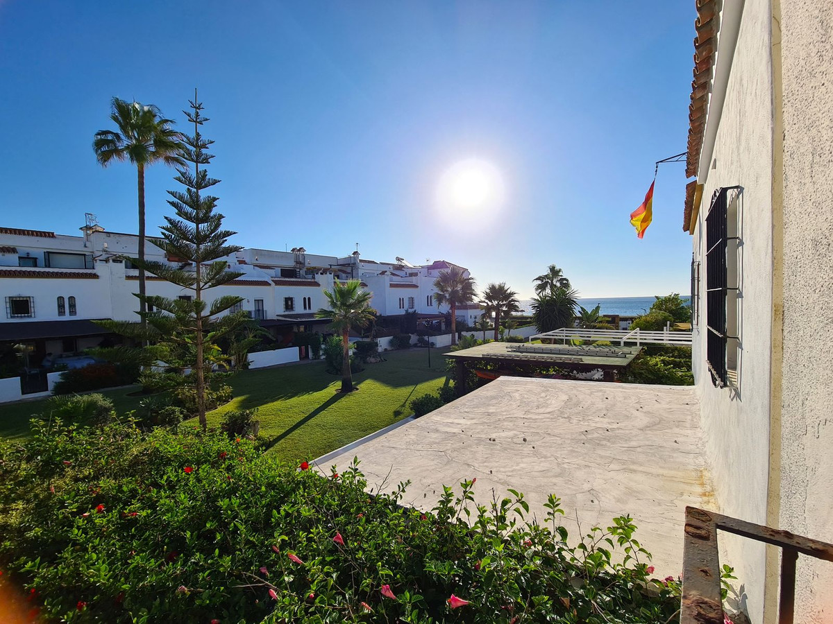 Uitstekend gelegen in een woonwijk aan het strand met toegang tot het kustpad dat de hele Costa del Sol verbindt, en het strand ligt op slechts een steenworp afstand. Dichtbij supermarkten, winkels, restaurants en een breed scala aan recreatiemogelijkheden, ligt Sabinillas op slechts 2 minuten rijden en Estepona op 10 minuten, terwijl de luchthaven van Malaga op 90 minuten rijden ligt. De woning is verdeeld over twee verdiepingen plus het solarium. Op de begane grond vinden we de hoofdingang met een ruime hal, een toilet met raam, een grote keuken met toegang tot het achterterras en een grote woon-/eetkamer met open haard en toegang tot een veranda die aansluit op de grote privétuin. Op de eerste verdieping bevinden zich de drie slaapkamers van het huis, elk met een eigen terras en inbouwkasten. Er is ook een ruime badkamer met een ligbad en een groot raam. De hoofdslaapkamer heeft een en-suite badkamer met een ligbad en een groot raam, evenals een prachtig overdekt privéterras. Op de bovenverdieping vinden we een torentje, een berging en een groot solarium met uitzicht op zee, de tuinen en het zwembad. Dit goed onderhouden complex biedt zwembaden, tuinen en toegang tot het strand. EEN GEWELDIGE KANS OM DE LUXE TE ERVAREN VAN EEN EIGEN HUIS OP EEN STEENWORP VAN DE ZEE!