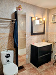 At the back, you'll find a functional patio with a countertop (including electrical sockets for outdoor cooking), a laundry room with a Junkers butane water heater, a utility sink, and plenty of shelving.