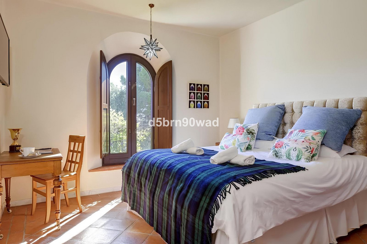 This property is surrounded by 26 acres of forest with amazing views over the mountains up to Gibraltar and Africa. The beautifully designed villa offers guests the height of a real retreat. The Moorish design of the building with her bougainvillea flowers on the walls are a unique quality to enjoy.