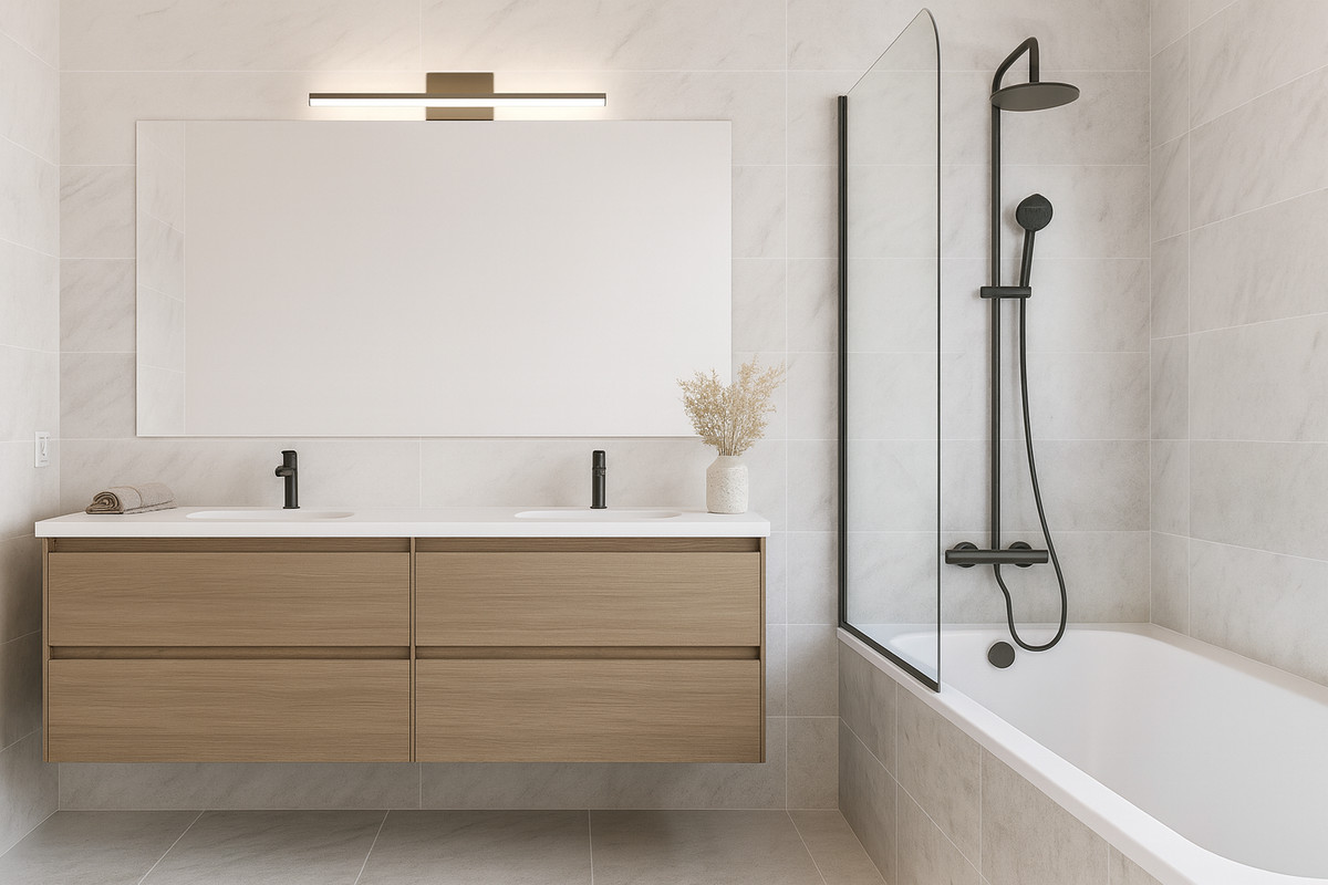 The sleeping area is located on the upper floor, with three bedrooms, all with built-in wardrobes. The master bedroom features a walk-in closet, en-suite bathroom, and access to a private 20 m² terrace with direct views of the golf course. The other two bedrooms share a full bathroom equipped with a bathtub.