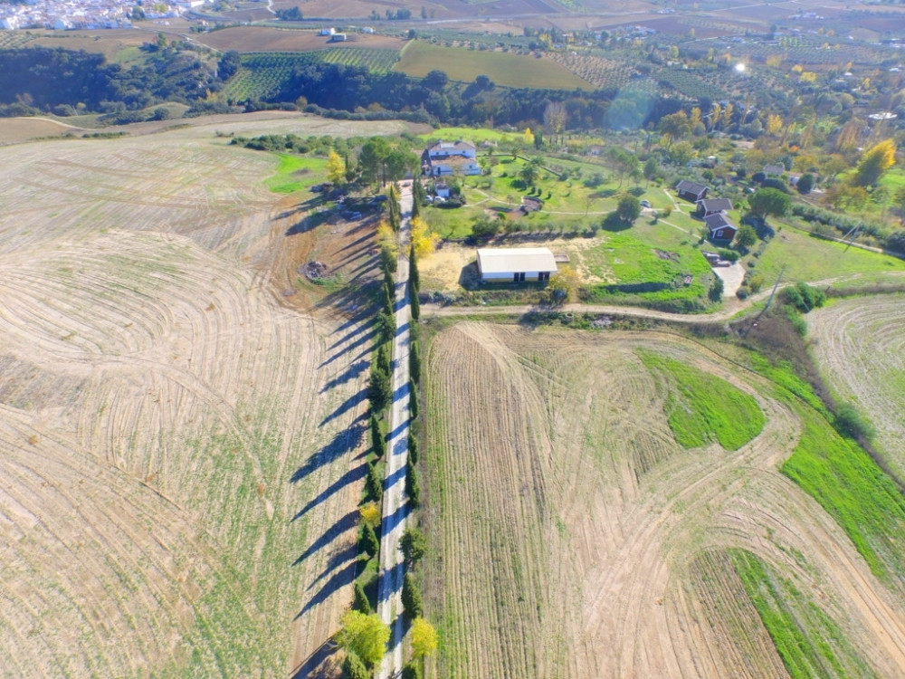 Andalusian Cortijo with wonderful panoramic views, 5.000 olives trees, excellent road access, 3 separate Bungalows and 10 stables, on an impressive flat and fully fenced plot of almost 200,000m2 with well water.