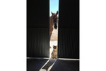 Vier ruime paardenboxen, waaronder één voor merrie met veulen