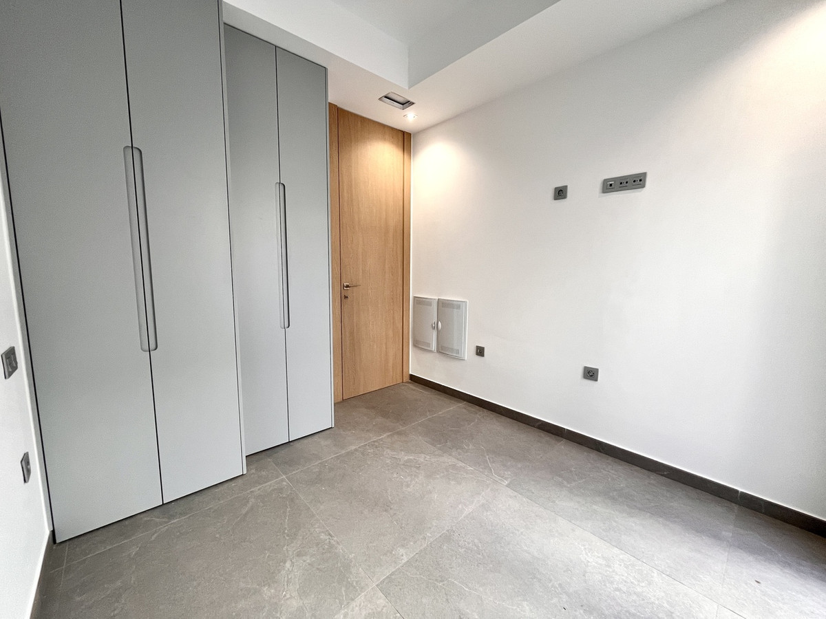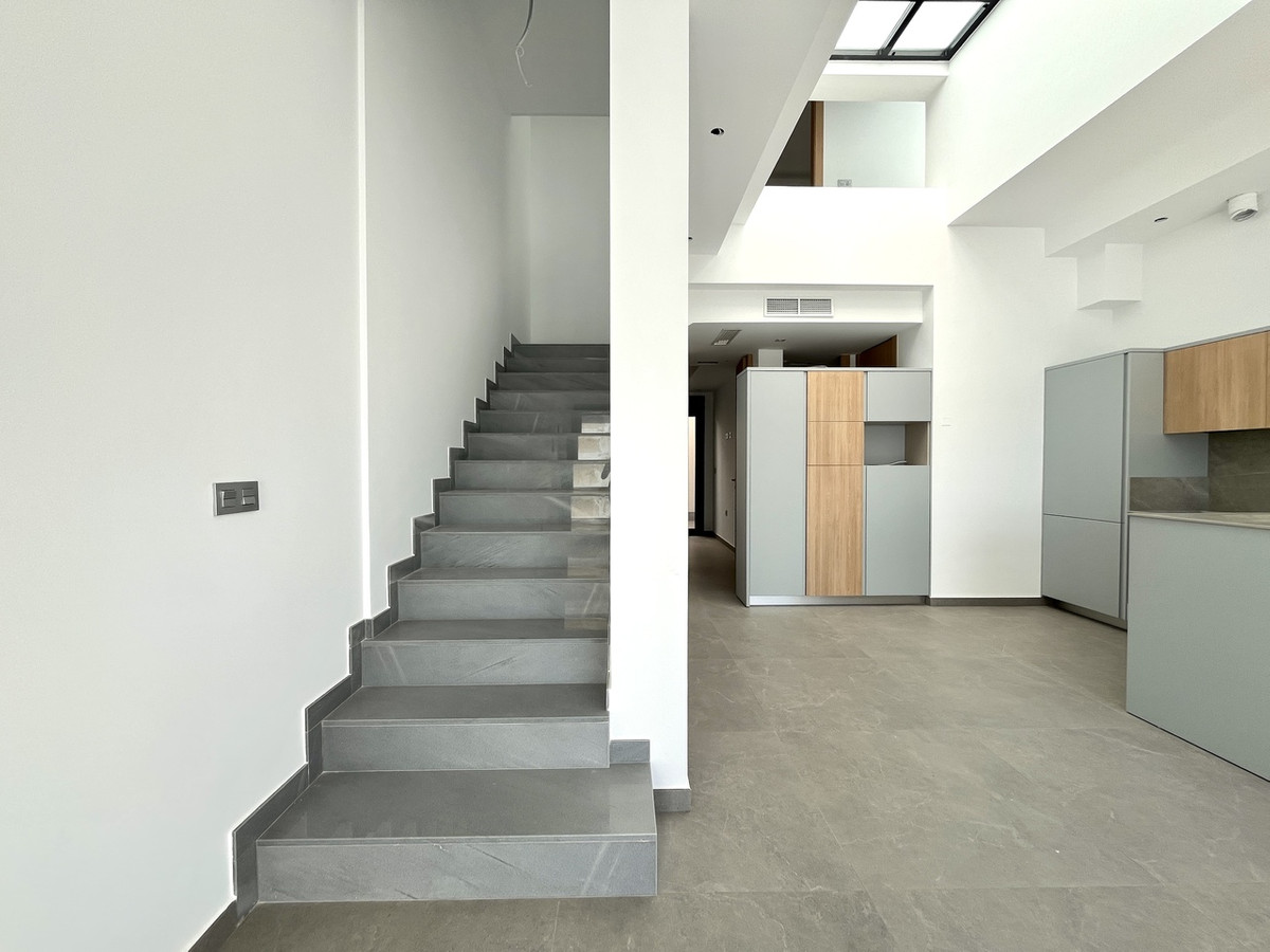 The villa welcomes you with spacious, light-filled interiors and a large open-plan kitchen that flows seamlessly into the living area, creating an inviting space for family life or entertaining. Each of the three bedrooms includes fitted wardrobes, while clever additional storage is provided under the stairs with built-in cupboards.