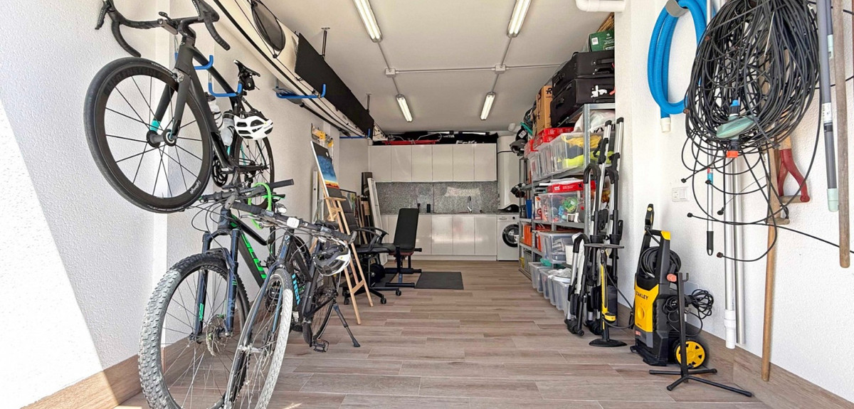 Privé garage met ingebouwde kasten. Mogelijkheid om om te bouwen tot een derde slaapkamer met badkamer.