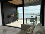 On the main floor, you'll find a stylish living room with an open-plan kitchen, creating a bright and social atmosphere. From here, you have direct access to a balcony/terrace of approximately 9.4 m² with sea views – perfect for breakfast or a morning coffee in the sun.