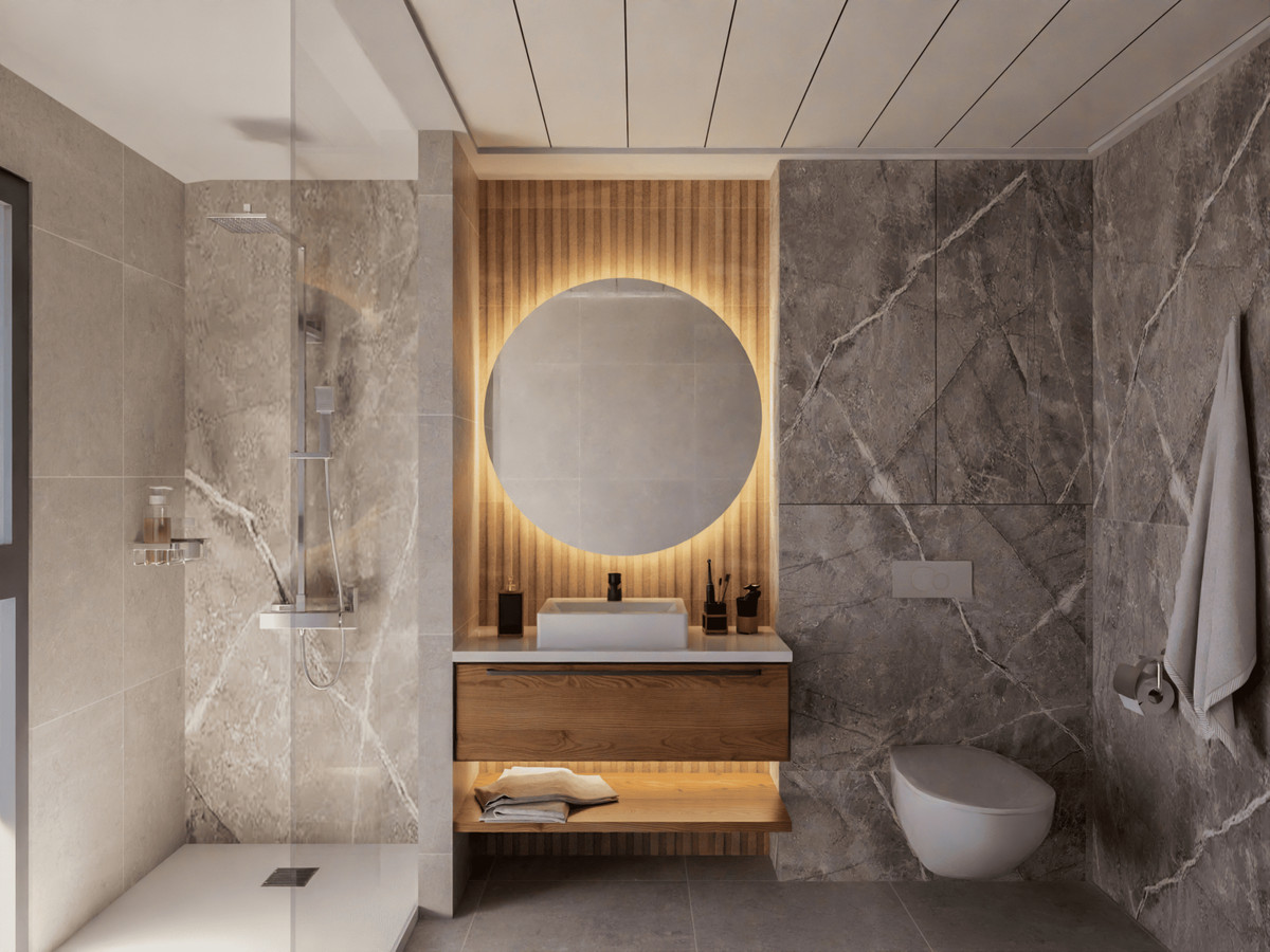 Elke villa beschikt over 3 slaapkamers en 3 volledig uitgeruste badkamers. Ze zijn ontworpen op twee verdiepingen in een eigentijdse stijl en open indeling, met een volledig uitgeruste keuken en woon-eetkamer.