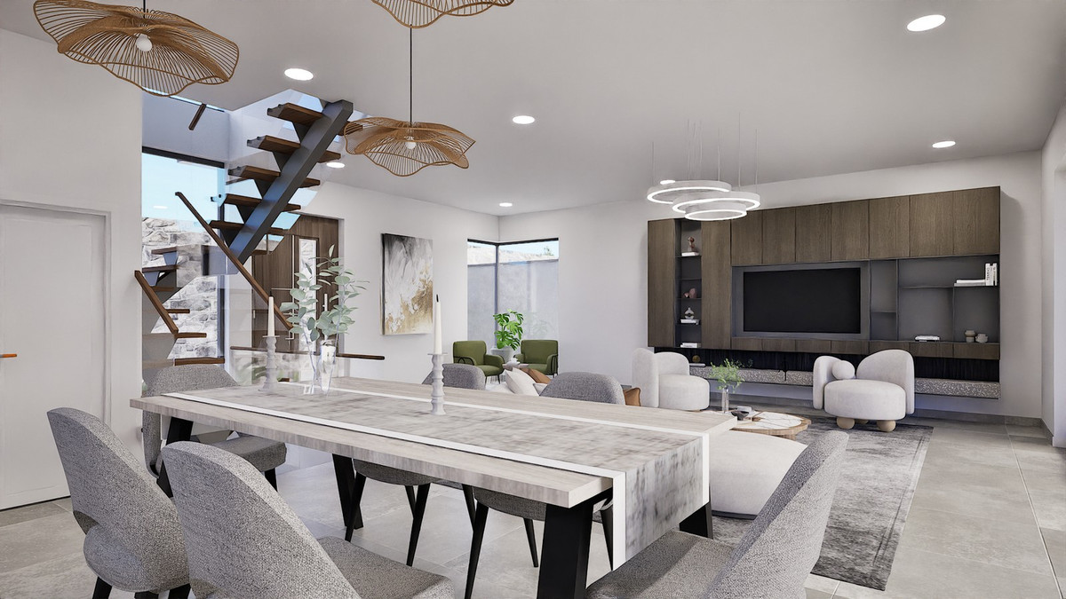 Begane grond: Echt open concept. Woonkamer en keuken vloeien direct over naar het terras en infinity zwembad. Uitzichten op natuur en zee brengen het buiten naar binnen.