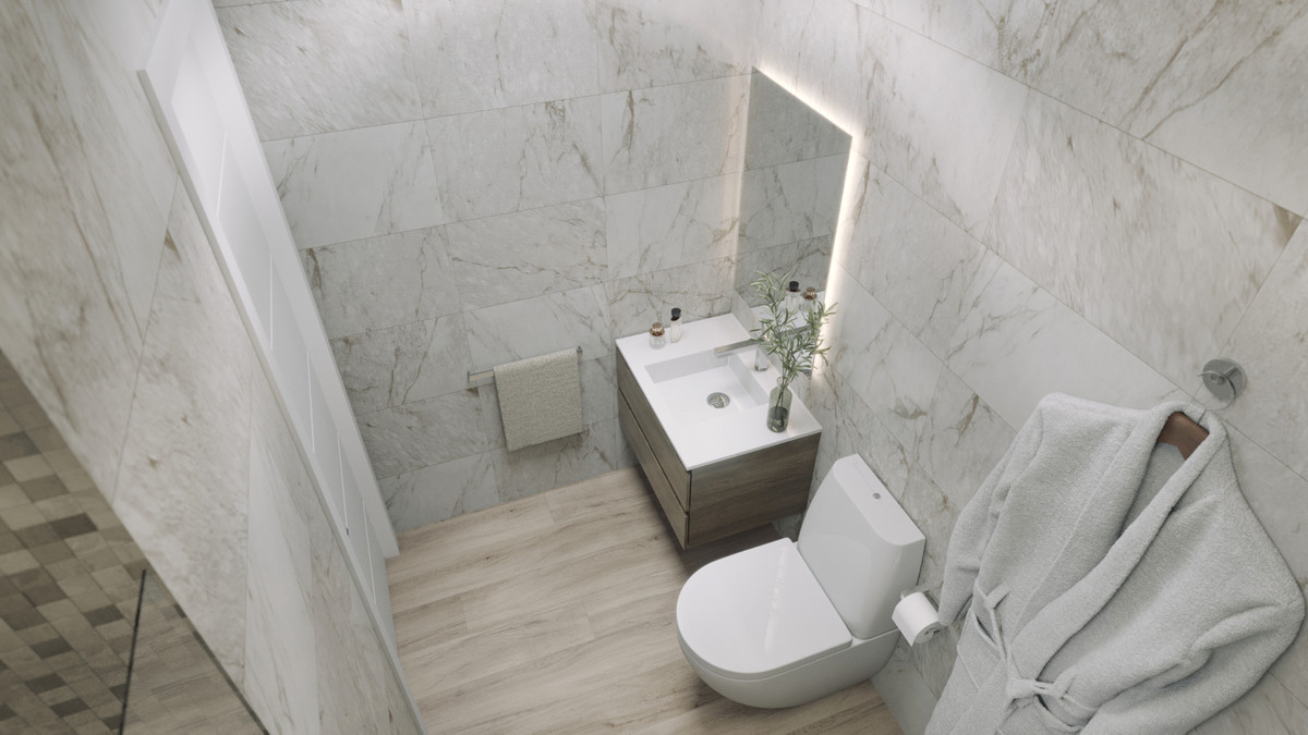 De woningen beschikken over zorgvuldig geplande indelingen, waaronder gelijkvloerse woningen met gemakkelijke toegang, stijlvolle appartementen met twee slaapkamers en twee badkamers, en studio-lofts die ideaal zijn voor alleenstaanden of koppels. De bovenste verdieping is voorbehouden aan exclusieve penthouses met panoramisch uitzicht, voor een verfijnde woonervaring aan zee.