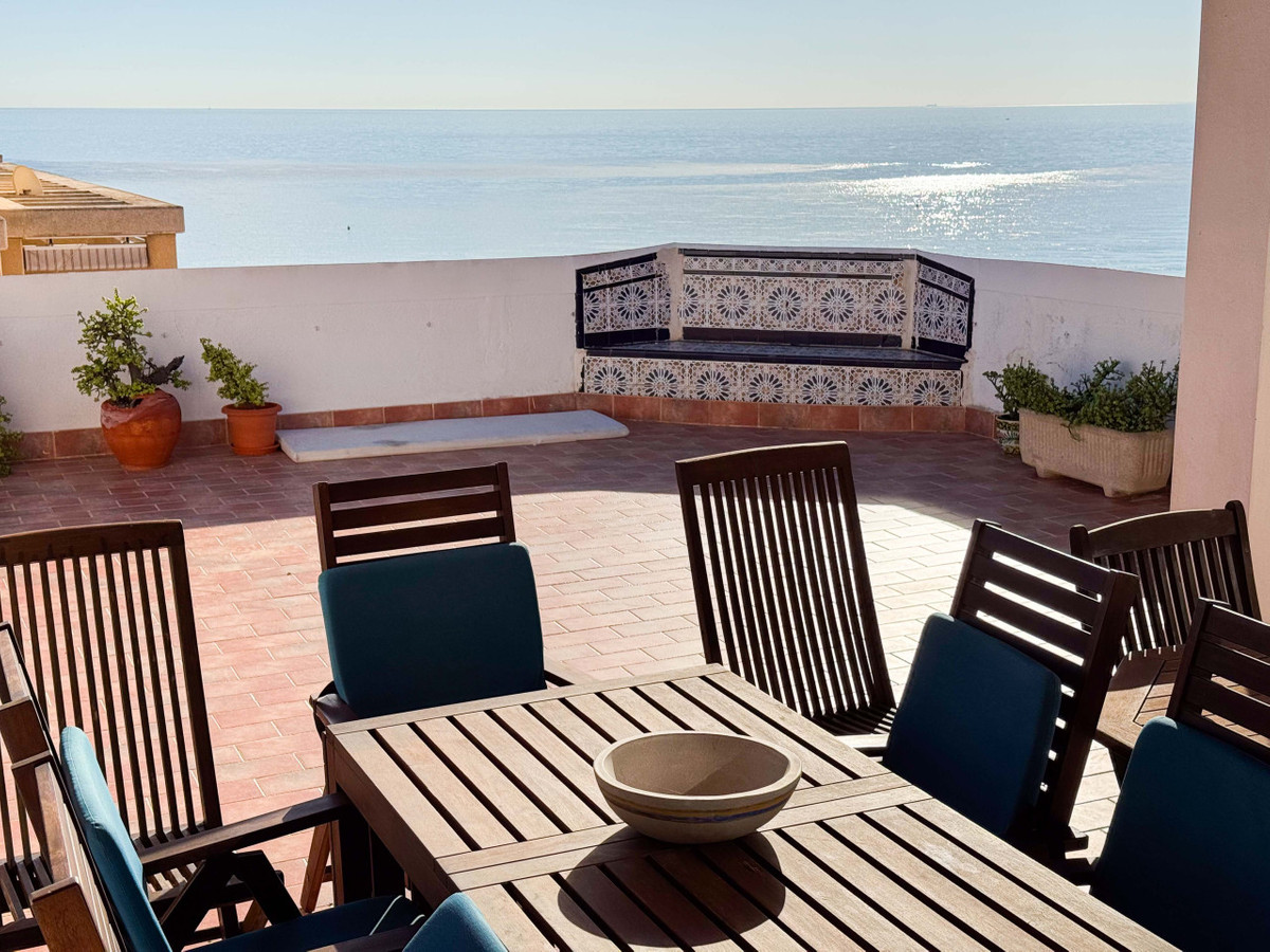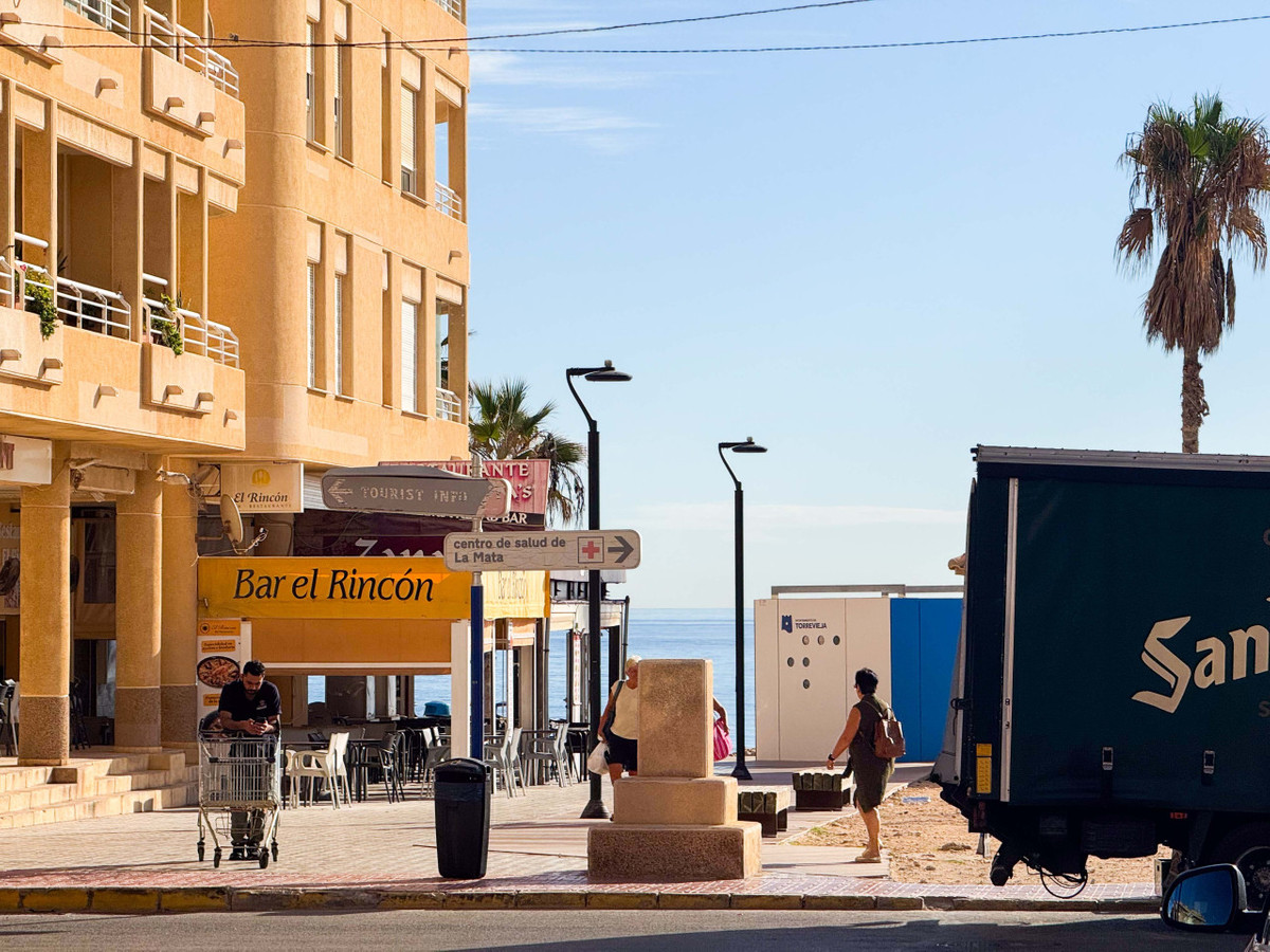 Dit penthouse in La Mata, Torrevieja, biedt een groot hoekterras met panoramisch zeezicht en een unieke kans om dicht bij het strand te wonen. Met 161 m2 bebouwd, beschikt dit appartement over vier ruime slaapkamers, twee grote woonkamers en een eetkamer, plus twee complete badkamers, waarvan één en suite. De indeling omvat een aparte keuken met wasruimte en een glazen terras dat als eetkamer wordt gebruikt, ideaal om te genieten van de zon in de ochtend en middag met zeezicht vanuit bijna elke kamer. De woning biedt mogelijkheden om naar eigen smaak te renoveren en een persoonlijk tintje te geven. Gelegen in het centrum van La Mata, op slechts 20 meter van restaurants, supermarkten, apotheek en andere voorzieningen, combineert dit penthouse comfort met een toplocatie. Ideaal voor investering met seizoensverhuur of als permanente woning. Mis deze uitzonderlijke kans niet. Neem contact op voor een bezichtiging of vraag een virtuele tour en plattegronden aan.