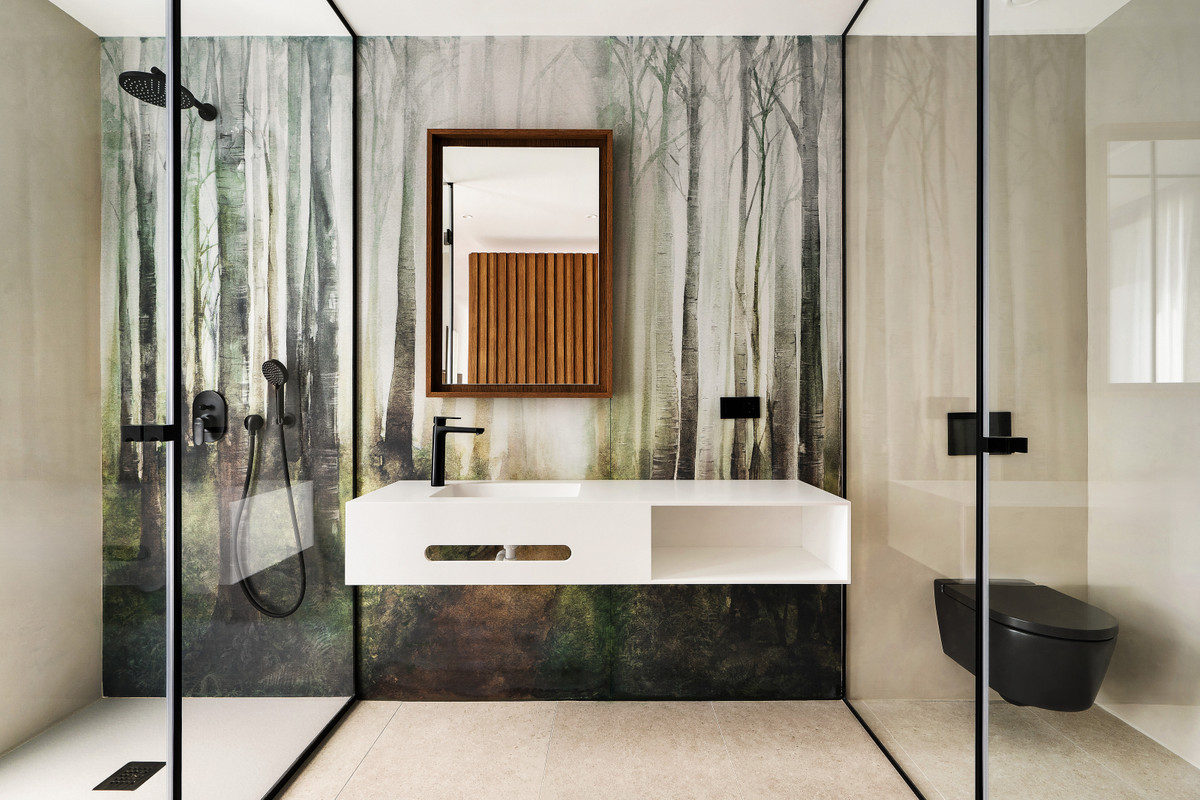 Op de eerste verdieping zijn er drie tweepersoonsslaapkamers en drie badkamers (waarvan twee en-suite). De hoofdslaapkamer beschikt over een eigen open terras van 19 m².