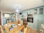 De volledig ingerichte keuken omvat een ruime eethoek, een wasruimte en directe toegang tot een terras met een barbecue en een pergola om te genieten van tijd met het gezin.