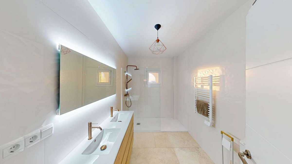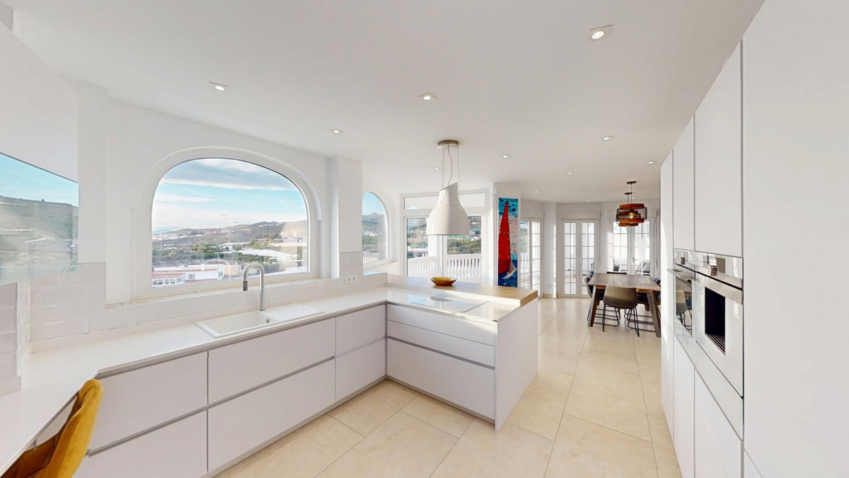 Deze spectaculaire villa in Torrox valt op door zijn ruimtelijkheid, lichtsterkte en adembenemende uitzichten op zowel de zee als de bergen, en biedt een ideale omgeving om te genieten van de rust en de mediterrane levensstijl. Op de begane grond van het huis vinden we twee slaapkamers met eigen badkamers, waarvan één ook een kleedkamer heeft, evenals een aparte badkamer voor meer comfort. De woon-eetkamer met open keuken is ruim en zeer licht, dankzij de grote ramen waarmee je kunt genieten van een prachtig uitzicht op zee en bergen. Vanaf deze verdieping is er toegang tot een gezellig overdekt terras, perfect om het hele jaar door te ontspannen. Op de bovenverdieping is er een grote slaapkamer, met toegang tot een privéterras vanwaar je kunt genieten van werkelijk spectaculaire uitzichten. Het hele huis valt op door zijn grote lichtsterkte en ruime ruimtes. Buiten heeft het terrein een buitenkeuken met een pizzaoven, ideaal voor vergaderingen en ontspannen buiten. Onderaan het perceel vinden we een ruim terras, een zomerkeuken, een zwembad en een gastenappartement, met een onafhankelijke en zeer veelzijdige ruimte. Het gastenappartement heeft een woon-eetkamer met een kleine keuken, een volledige badkamer en een ruime kamer, perfect om familie of vrienden in volledige privacy te huisvesten. Daarnaast beschikt het pand over een grote carport, die comfort en extra ruimte biedt. Een uniek, licht huis met meerdere mogelijkheden, gelegen in een bevoorrechte wijk van Torrox, ideaal als permanente woning en als investering. We zijn verheugd dat we deze woning binnenkort aan u kunnen presenteren, hetzij persoonlijk of via virtuele bezichtiging. Omdat deze wereld uniek is – net als onze Axarquía. In Andalusië. Aan de Costa del Sol. Hier, aan de zonnige kant van het leven…