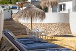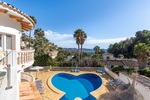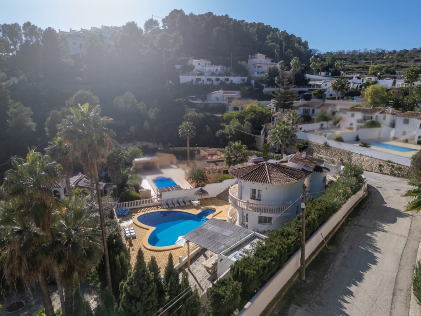 Unieke villa te koop met vijf slaapkamers, zicht op zee en een goede zon ligging in Benimeit, MorairaMet trots stellen wij u deze exclusieve villa voor, gelegen in het geliefde Benimeit te Moraira. Een rustige, zonnige locatie, en toch slechts een korte autorit verwijderd van alle voorzieningen, het centrum en de stranden.U betreedt het eigendom via een grote elektrische poort die toegang geeft tot een ruime parkeerplaats. Van hieruit bereikt u de woning volledig gelijkvloers, zonder trappen – een bijzonder comfortabel pluspunt!Binnenkomen doet u in een gezellige, lichtrijke woonkamer met houtkachel en met een open, volledig gerenoveerde keuken, afgewerkt in stijlvol microcement. Alle toestellen zijn aanwezig en de vaste microcement eettafel, naadloos verbonden met de keuken, nodigt uit tot lange, gezellige avonden tafelen. Op dit niveau bevinden zich tevens twee charmante slaapkamers die een prachtige gerenoveerde badkamer delen, eveneens in microcement, voorzien van ligbad en dubbele wastafel.Via een binnentrap bereikt u de bovenverdieping, die ook volledig kan worden afgesloten, of u heeft toegang langs buiten. Hier vindt u een derde, zeer ruime slaapkamer met nieuwe ensuite badkamer en een royaal privébalkon met adembenemend uitzicht over zee en het centrum van Moraira.Aansluitend, via een open gangetje dat kamer drie en vier met elkaar verbindt, bereikt u de volgende slaapkamer – ook wel de “torenkamer” genoemd. Een werkelijk unieke ruimte met hoge plafonds, typische Spaanse houten balken, een vernieuwde ensuite badkamer en opnieuw een balkon met spectaculair zeezicht.Last but not least is er de vijfde slaapkamer op het gelijkvloers, met aparte buitentoegang, hemelbed en ensuite badkamer in microcement. Vanuit deze kamer komt u rechtstreeks op het prachtig aangelegde terras met stijlvolle parasols en een volledig uitgeruste, overdekte buitenkeuken – de perfecte plek om tijdens de zwoele zomerdagen te genieten van schaduw, gezelligheid en lange diners. Wanneer het donker wordt kunt u een niveau hogerop: het dakterras boven de buitenkeuken geniet u met een glaasje wijn van de lichtjes van de omgeving en de magische sfeer!Langs een trap naar beneden bereikt u het zwembadgedeelte. Het grote zwembad heeft een a-typische vorm – kunt u raden welke? – en wordt omringd door ruime terrassen om te zonnebaden. Er zijn twee bergingen en een prachtige buitendouche in natuursteen die het geheel compleet maken.De woning is uitgerust met airconditioning voor koelen en verwarmen, zonneboiler, dubbele beglazing (deels met rolluiken), heeft een uitstekende zonligging en geniet volledige privacy. Bovendien wordt de villa momenteel zeer goed verhuurd, wat deze villa ook bijzonder interessant maakt als investering.Belangrijkste kenmerken:ZeezichtGoede oriëntatieVijf slaapkamers en vier badkamers (3 ensuite)Volledig uitgeruste, overdekte buitenkeukenGeen inkijkWordt momenteel goed verhuurd – interessant als investeringDubbele beglazing, vernieuwde badkamers en keuken, air conditioningOp korte rijafstand van voorzieningen, het strand en het centrumRustig gelegen, zonder inkijk, met zon quasi de hele dag en een uitzonderlijk uitzicht: hier komen charme, comfort en rendement perfect samen.Wacht niet langer en maak vandaag nog uw afspraak om deze unieke villa te ontdekken.Prijs exclusief belastingen en aankoopkosten.