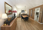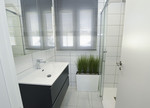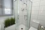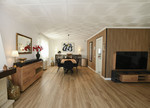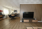 The living area comprises a living room with dining area, a separate kitchen, laundry room, pantry, three bedrooms and two bathrooms. In addition, there is an extra bedroom with a separate entrance.