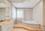 Op de bovenverdieping bevindt zich een spectaculaire master suite, voorzien van een ligbad en een eigen douche, evenals toegang tot twee aparte terrassen. Op deze verdieping bevinden zich ook twee extra slaapkamers, een complete badkamer en een gedeeld terras.