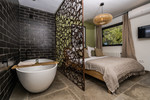 While the exterior charms with an outdoor dining area and barbecue space shaded by refreshing Balinese umbrellas, the interior impresses with its warmth and refined elegance. A harmonious blend of styles and carefully curated details flows throughout the open-plan kitchen and living-dining area, giving this Mediterranean-style villa a truly distinctive character. Traditional elements such as balustrade columns and arched terraces beautifully frame the panoramic views of the sea and mountains.