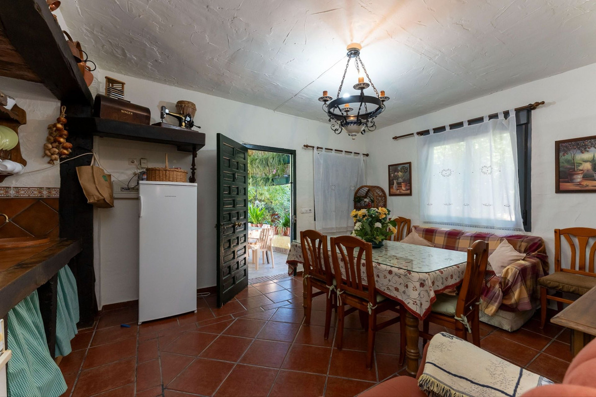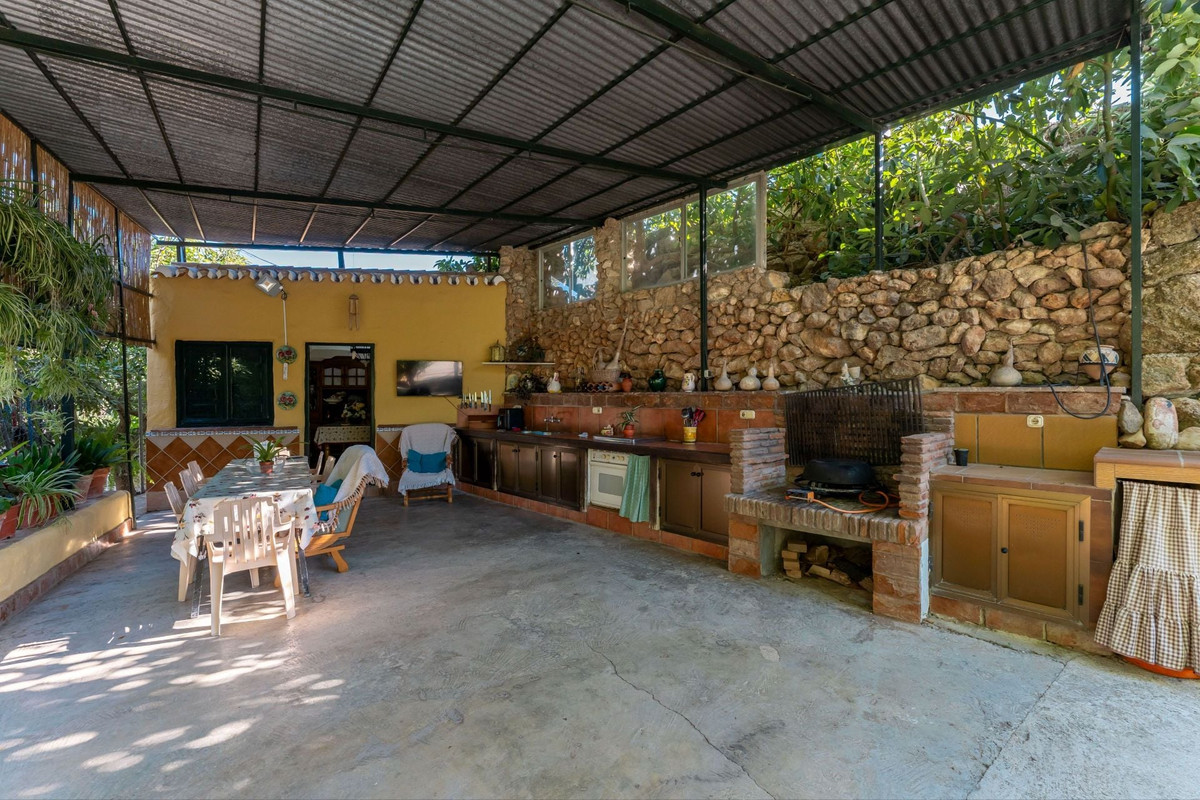 This charming and traditional single-story country property is located just a short drive from the vibrant village of Coín. Set on a private plot of 2,550m², distributed over three terraces, the home enjoys peace, privacy, and lovely countryside surroundings. The house itself offers three bedrooms and two bathrooms. Please note that the third bedroom is a single small room accessed through the second bedroom, and one of the bathrooms is external, conveniently located for poolside use. Inside, there is a cozy living room with a fireplace and air conditioning, plus a spacious covered terrace with a summer kitchen, perfect for year-round outdoor living.