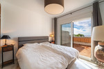 On the ground floor you will find an open plan kitchen, a guest WC and he living and dining room which is leading out to a covered terrace and a small garden with access to the communal pool & gardens. On the first floor you will have 2 bedrooms sharing one bathroom, the master bedroom with en-suite bathroom and access to the south facing terrace with impressive views.