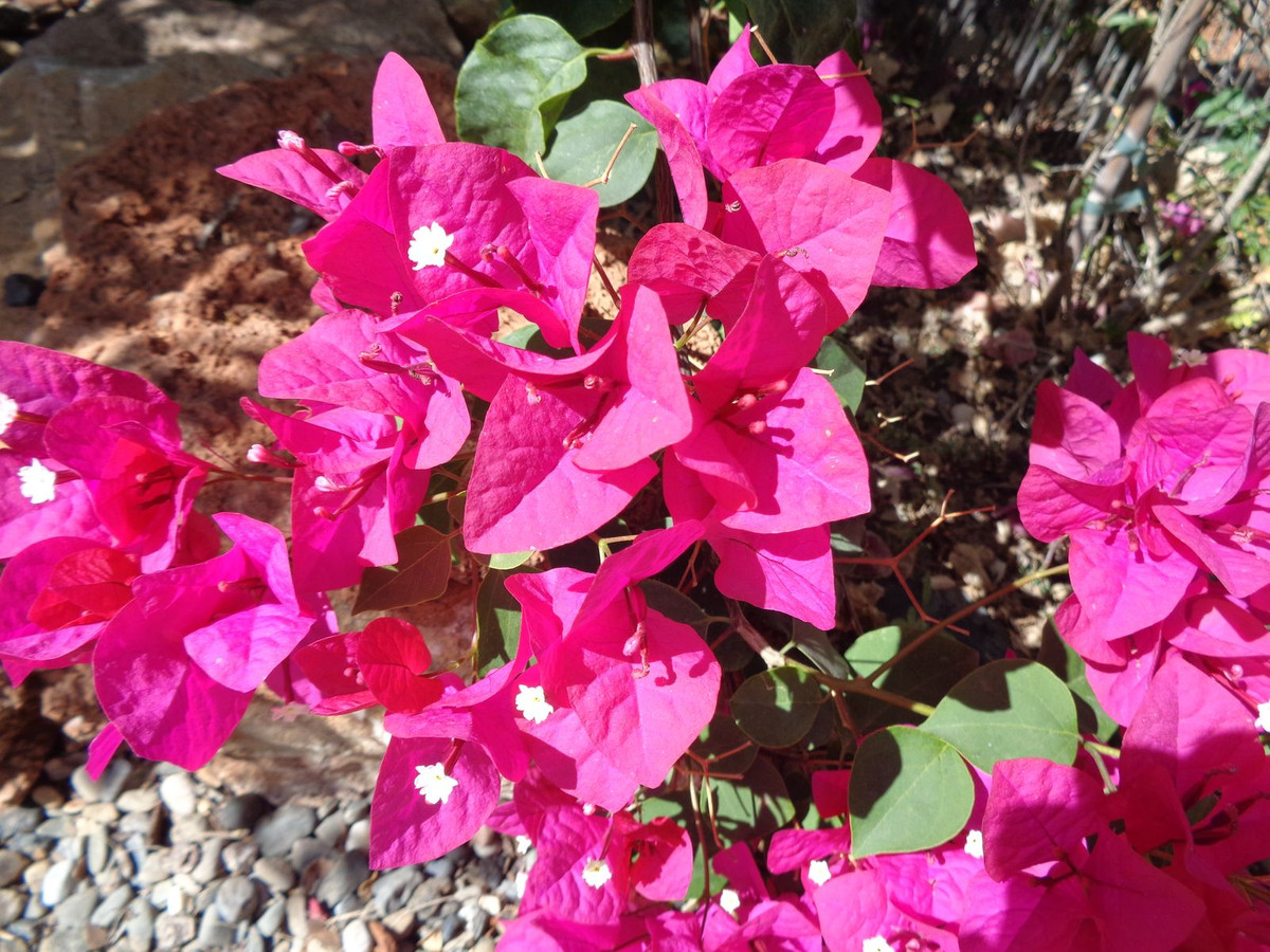From the swimming pool zone, the footpath meanders through the garden passing incredible Rose bushes, a small herb garden, native trees and bushes and a bountiful fig tree.. And almost all of the perimeter is protected with striking shades of Bougainvilla.