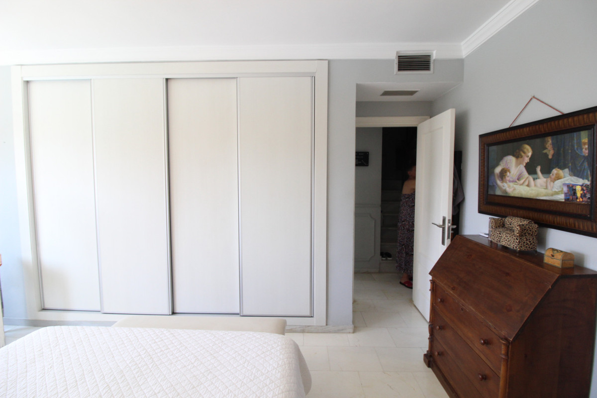 Enjoy the communal garden from the lounge porch! On the first floor are the 3 bedrooms and 2 bathrooms, one of them en suite with shower and large dressing area. New wardrobes in all bedrooms . It is a closed and very well maintained community. The house has several Porches, and huge Solárium with a wooden roof recently put so this new one. Ideal for chill out area and outdoor dinners with barbecue and closed part as well as laundry room. The fantastic panoramic views of the whole wooded area and the mountains of La Quinta. The urbanization is close to everything: Supermarkets, Colleges, Shops, Restaurants etc.. is ideal for Holidays or for families. And perfect to live all year. It has general air conditioning throughout the house and blinds. San Pedro de Alcántara is a 4-minute drive from Puerto Banus. It is for all an ideal house for families and also for investment and enjoy Marnbella with everything next to it;