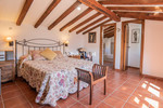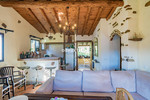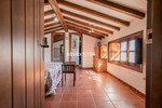 The primary residence is designed with warmth and character, featuring natural wood-beamed ceilings that enhance the cozy atmosphere. The layout is as follows: