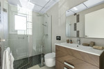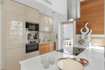The main level offers an impressive sense of space thanks to the open-concept living and kitchen area, beautifully designed with premium materials and plenty of room for a full dining setup. The large windows enhances the natural light and creates an airy, sophisticated atmosphere. On this level you will also find one of the bedrooms and a stylish bathroom.