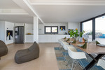 De bovenste verdieping beschikt over een enorme woonkamer met een open, volledig uitgeruste keuken. Vanuit de woonkamer heeft u toegang tot een groot terras met een fantastisch uitzicht op zee.