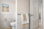 Situated in Estepona East, one of the most desirable residential areas on the Costa del Sol, the property is just a five-minute walk to the beach, beach bars and restaurants. It is adjacent to La Resina Golf & Country Club and close to Selwo Aventura, making it particularly attractive for golf property buyers in Estepona. Hospiten Hospital is less than 1 km away. Estepona centre is 5–8 minutes by car, Puerto Banús and Marbella are 15–20 minutes away, and Málaga International Airport can be reached in approximately 45 minutes via the AP-7.