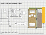With 95 m² of built interior space, the apartment features two spacious bedrooms and two full bathrooms, both with exterior windows, a rare feature that enhances natural light and ventilation. The corner position provides additional windows and excellent cross-ventilation, increasing brightness throughout the living areas.