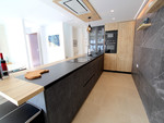 A bright and spacious open-plan lounge and dining area with large patio doors leading directly to the pool area. The designer kitchen features top-of-the-range appliances, ample storage, generous workspace, and a Quooker tap for instant boiling water. This floor also includes a guest toilet and a large double bedroom with fitted wardrobes and a private en-suite bathroom.