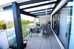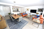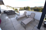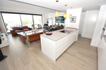 Fantastic, recently built apartment which is perfect for families who want to live in a spacious and comfortable home. It consists of a generous living-dining room, fully fitted open plan kitchen, equipped with Bosch electrical appliances, 3 bedrooms, 2 bathrooms, guest toilet and a utility room. The lounge and kitchen blend together seamlessly and with windows in the kitchen and floor to ceiling patio doors in the lounge this beautiful living space is flooded with natural light and fresh air. The master bedroom has an en-suite bathroom and walk-in closet. Bedrooms 2 and 3 also have built-in wardrobes and they share a shower room. Like the lounge, all bedrooms have direct access to the very spacious 55m2 terrace where you can enjoy stunning sunrises and views of La Noria Golf course and the surrounding area. The terrace from the lounge has glass curtains creating an extra room for use in the winter. In the summer you open the curtains to enjoy the full terrace space, the perfect solution for year round use. Air conditioning hot and cold, video intercom, under floor heating in lounge/dining room, kitchen and all bedrooms which together with the A/C and hot water are powered by an aero-thermal system. A secure underground parking space and private storage room are included in the price and there is a lift and stairs from the garage to all levels. With only two apartments on each floor this property has no neighbours on either sides and is therefore very private. Located in a gated community, with a large circular swimming pool for adults and a separately gated large children“s swimming pool with night-time illumination, two paddle-tennis courts, children's playground and landscaped garden this is a quality residential community perfect for permanent living or amazing family holidays. Within 10 minutes walk of La Cala Beach this is the perfect apartment for family holidays all summer. The owners added many extras to this apartment including, top of the range kitchen worktops, extractor built into the hob, shutters (persianas) added to kitchen and WC windows, glass screen on corner of terrace and sun shade (toldo) above the main seating area of the the terrace.