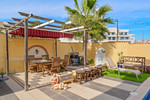De onderhoudsvriendelijke tuin met kunstgras creëert een groene, verzorgde sfeer zonder veel onderhoud, waardoor je volop kan ontspannen en genieten van het Spaanse klimaat. De aanwezige jacuzzi maakt het buitenleven extra comfortabel en uitnodigend.