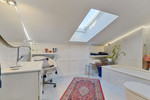 Welcome to this unique and bright single-level penthouse with a total built area of 174 m², ideally located in the very heart of Fuengirola. Here you enjoy an unbeatable location within walking distance of the marina, shops, restaurants and all amenities. The train and bus stations are just a few metres away, and the beautiful sandy beach can be reached in approximately 400 metres. The property offers a well-thought-out layout and a wonderful sense of space and light throughout. You are welcomed by a generous entrance hall, with the master bedroom located to the left, featuring a large en-suite bathroom with walk-in shower. Further into the apartment, there is a guest toilet and an impressive living area with an open-plan layout connecting seamlessly to an exclusive Danish-designed kitchen of the highest quality. A spacious dining area makes this space ideal for social gatherings. In a separate section of the living area, you will find a charming lounge room that was previously part of the terrace and is now fully enclosed with glass. This room extends the living season and creates a natural transition between indoor and outdoor spaces. From here, double doors also lead out to the terrace.