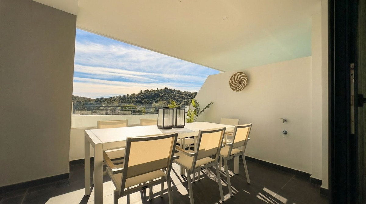 Daarnaast is er een tweede terras op het noorden met uitzicht op de heuvels van Mijas en de lagune binnen het resort, ideaal voor de avondzon.