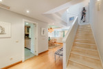 Op de begane grond zorgt een lichte woon- en eetkamer met dubbele plafondhoogte voor een indrukwekkend ruimtelijk gevoel, aangevuld met de keuken en een gastentoilet.