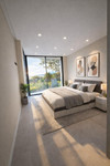 The open living areas are enhanced by impressive high ceilings, creating a bright and airy atmosphere throughout. Large floor-to-ceiling windows frame the surrounding landscape and provide seamless indoor-outdoor living with spectacular sea views.