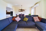 The west-facing living room floods the space with natural light, enhancing the sense of wellbeing and openness.