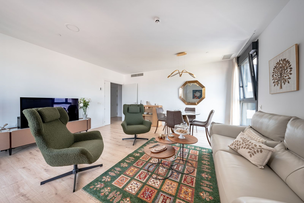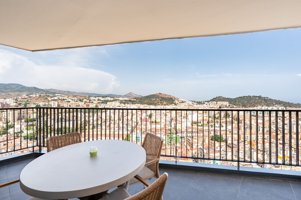 Step into elevated elegance in the heart of Malaga with this exquisite three-bedroom, two-bathroom residence located on the twenty-fourth floor of the iconic AQ Urban Sky South Tower. Soaring above the city, this contemporary sanctuary offers sweeping panoramic views that stretch from the shimmering Mediterranean Sea to the historic charm of La Alcazaba, capturing the very essence of coastal sophistication.
