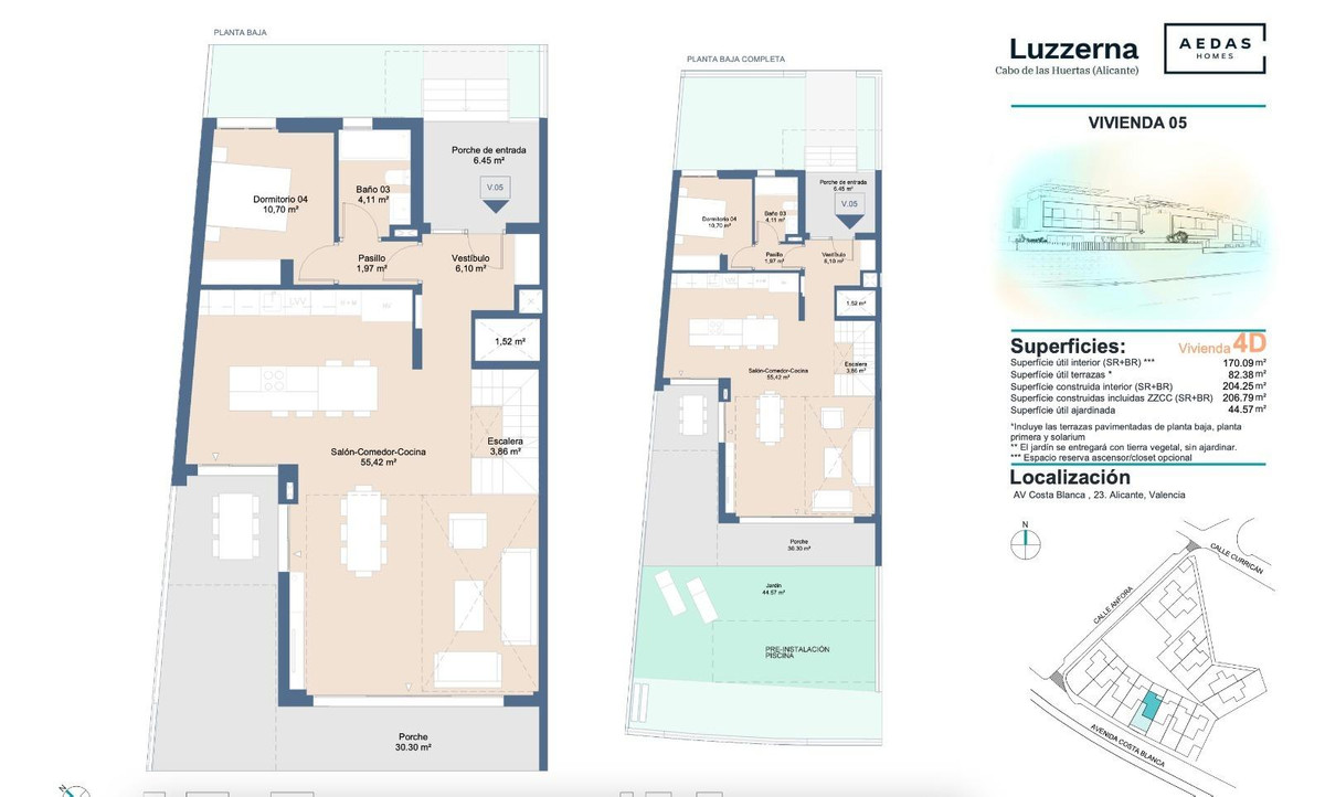 Discover Luzzerna: Your New Home in the Heart of AlicanteLuzzerna is more than a new development; it's a lifestyle designed for those who seek to combine comfort, luxury, and a privileged natural setting.✨ 14 exclusive chalets with 4 or 5 bedrooms, modern design, and high-quality finishes.???? Located in Cabo de las Huertas, between Albufera and San Juan beaches, just 100 meters from stunning coves.???? Spacious interiors: 207 m² across 3 floors, with terraces and garage included.A unique setting designed for youSaltwater pool and outdoor jacuzzi: wellness and sustainability in your home.Landscaped areas and recreational spaces to enjoy the outdoors.Urbanization integrated into the landscape with meticulous attention to detail.Convenience without compromiseJust 15 minutes from Alicante city center.Close to schools, healthcare facilities, shopping centers, and sports venues.At Luzzerna, we've thought of everything to make every day special. Live the exclusivity in a unique setting where luxury and nature meet.???? Contact us and visit your future home. Luzzerna awaits you!