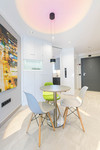 Dining room with the living room next to it, sliding door to the terrace. Spacious bedroom with sliding door to the terrace. The best materials have been used, both for the kitchen cabinets, appliances, worktop and lighting. New floors throughout the flat, top quality sliding doors that are heat and cold resistant. Impecable seaviews 180 degrees.