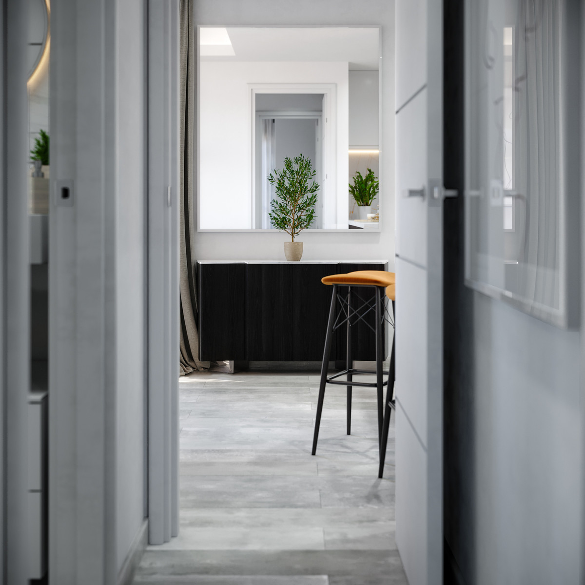In hal, woonkamer, gang en slaapkamers: zwevende laminaatvloer
