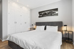Two additional stylish guest bedrooms provide comfortable living spaces with fitted wardrobes and a shared modern bathroom. Luxury finishes such as marble flooring, brand-new fixtures, hot and cold air conditioning, and double-glazed windows complete this exquisite home.