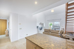 The apartment is distributed over two levels. On the main floor, there is a spacious living room with high ceilings that enhance the sense of space and character, along with an open-plan American-style kitchen connected to the living area, creating a comfortable and functional layout. On this level, you will also find the main bedroom with en-suite bathroom and a practical separate laundry area.