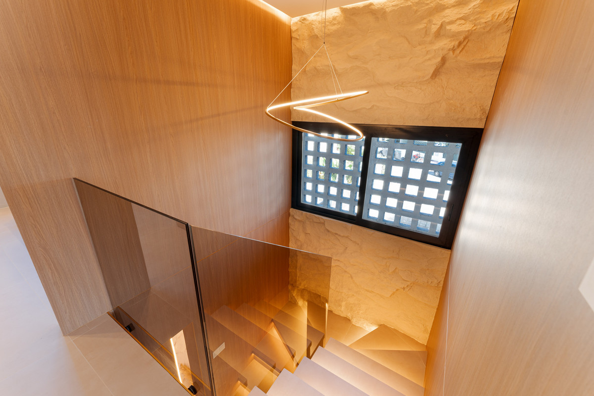 The townhouse spans four bedrooms and three bathrooms, including one en-suite, a full family bathroom, and a guest toilet. Every detail of the renovation has been executed with precision and taste. The interiors feature bespoke carpentry, microcement finishes, and discreet LED lighting that creates a warm and inviting ambiance. The result is a home that feels both sophisticated and comfortable, equally suited for year-round living or as a luxurious holiday retreat.